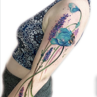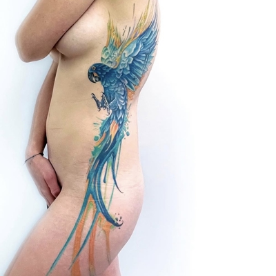 Tatuando profesionalmente desde 2010, desarrolla un estilo personal y original en watercolor sólido y abstracto, caracterizado por la fluidez de sus pinceladas. Sus grandes composiciones corporales le permiten jugar con la anatomía del cliente, creando piezas que se integran de forma natural con el cuerpo. Además, realiza trabajos en negro sólido, explorando estilos de mancha o gráfico con trazos expresivos y definidos.